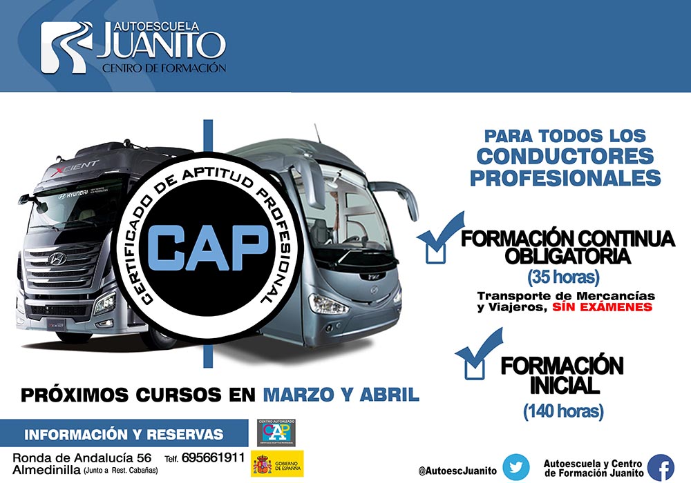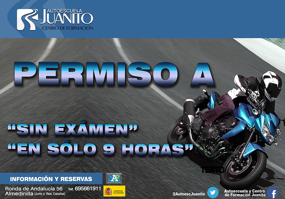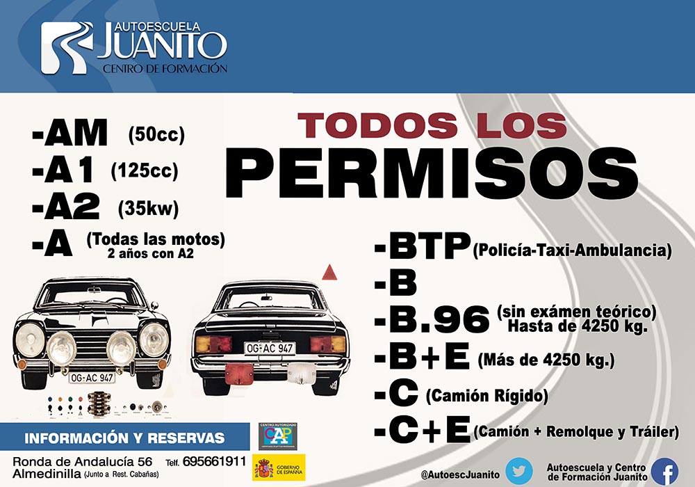 Autoescuela y centro de formación 'Juanito' abre sus puertas para Priego de Córdoba y Almedinilla. Empresa familiar avalada por más de treinta de experiencía en el sector. Fórmate con los mejores profesionales y los últimos métodos de formación. Autoescuela Juanito es un Centro con actividad en el sector del transporte a nivel provincial. Homologado oficialmente por la Dirección General de Tráfico, ministerio de Fomento, Instituto de investigación y formación agraria y pesquera, Junta de Andalucía.